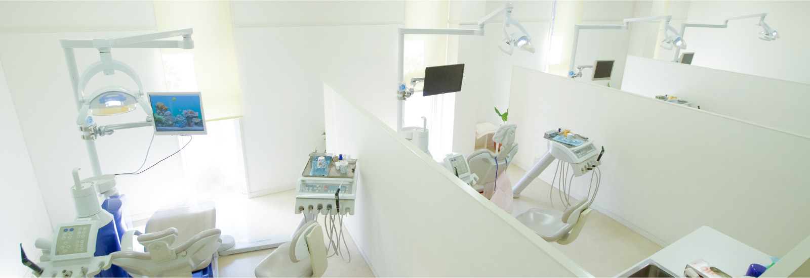 診療チェアーでは温水を使用し、刺激の少ない治療を心掛けています。歯を削る器具にはモーター式を採用し、歯や歯ぐきへの負担を軽減しています。補綴物は専属技工士が精密に製作し、妥協のない品質を大切にしています。
